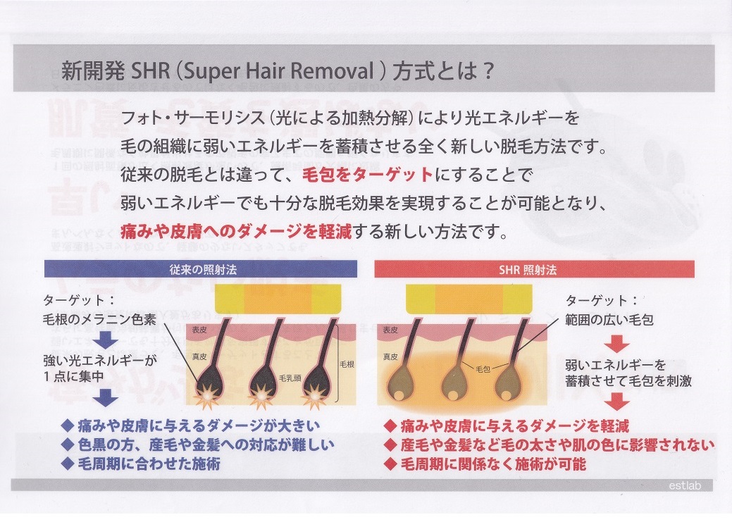 GLOBALIPL-SHR Model US001F を使用して脱毛処理を行います。